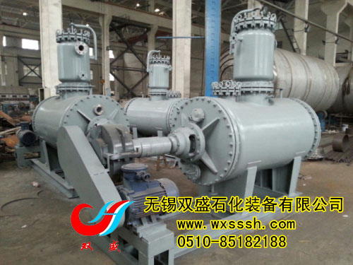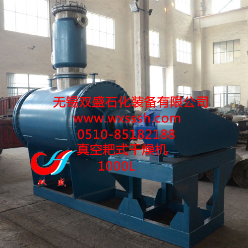 被干燥物料從殼體上方正中間加入,在不斷正反轉(zhuǎn)動(dòng)的耙齒的攪拌下,物料軸向來(lái)回走動(dòng),與殼體內(nèi)壁接觸的表面不斷更新,受到蒸汽的間接加熱,耙齒的均勻攪拌,粉碎棒的粉碎,使物料內(nèi)的水份氣化,在真空系統(tǒng)的作用下,使被干燥物料內(nèi)部水份和表面水份更有利的排出,氣化的水份經(jīng)干式除塵器、濕式除塵器、冷凝器,從真空泵出口處放空。